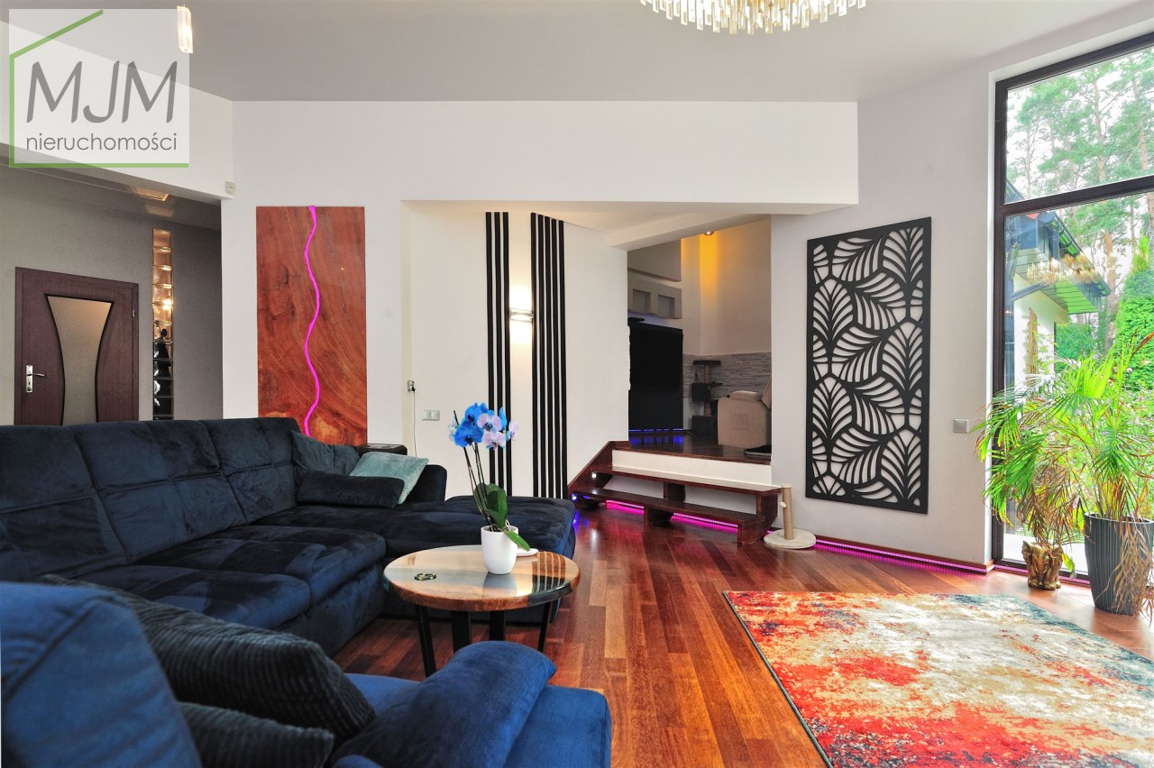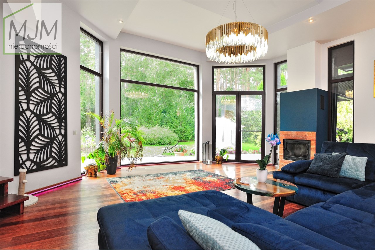 • przestronny salon z dużymi przeszkleniami i widokiem na ogród (ok. 40 m²),