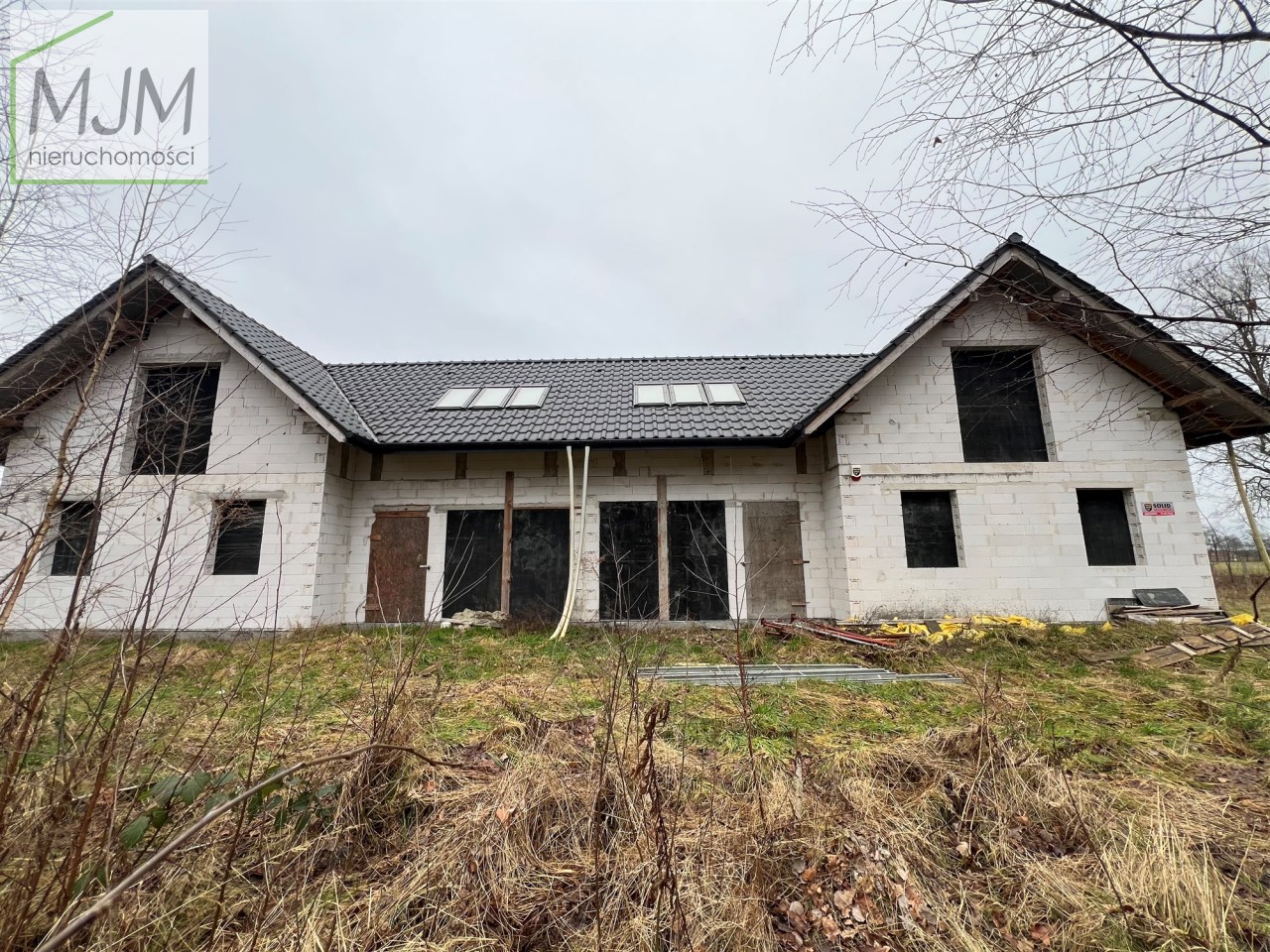 Budynek sprzedawany w stanie surowym otwartym, bez ścianek działowych w środku, aby nowy właściciel miał możliwość zmian i rozstawu pomieszczeń. Dach pokryty dachówką ceramiczną. Dojazd do działki drogą gruntową.