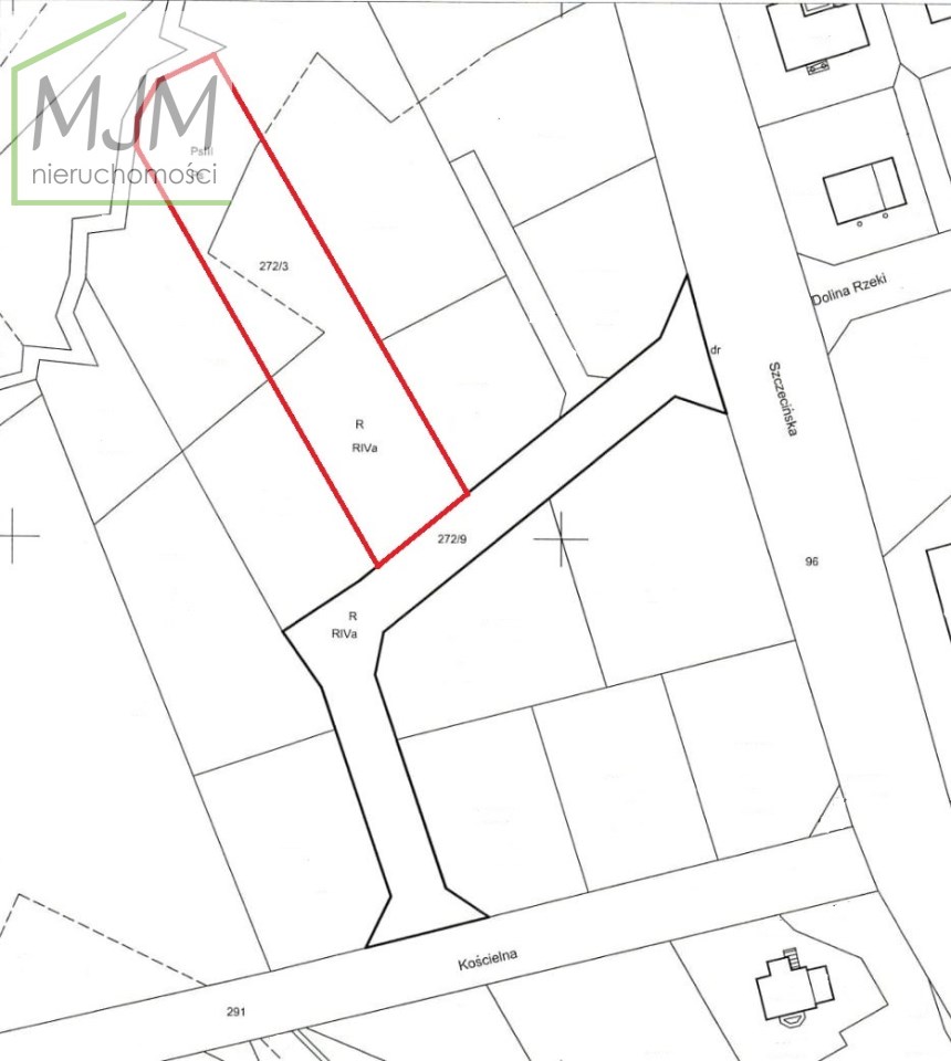 Działka w kształcie prostokąta, teren płaski, opadający w końcowej części w stronę strumienia Przęsocińska Struga, z dostępem do strumienia. Front działki 20 m, rodzaj użytku RIVa, PsIII. W cenie udział 1/13 w działce drogowej umożliwiającej dostęp do drogi publicznej w ul. Kościelnej lub Szczecińskiej.