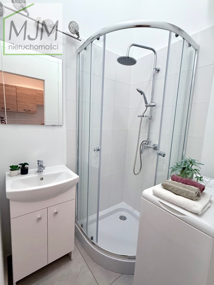 Łazienka wyposażona w kabinę natryskową, umywalkę, lustro, pralkę. W kuchni nowe szafki i sprzęt AGD. W cenie cale wyposażenie widoczne na zdjęciach.