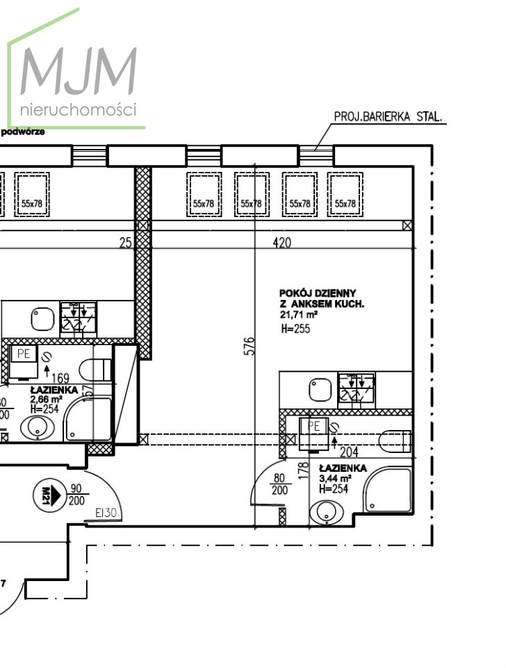 Mieszkanie o jednostronnej - wschodniej ekspozycji okien. Powierzchnia użytkowa wg. dokumentacji projektowej to 25,15 m2.