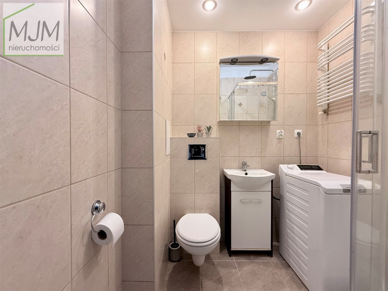 łazienka z kabiną prysznicową, dodatkowo wyposażona w elektryczne ogrzewanie podłogowe