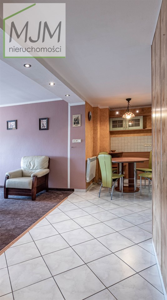W pokojach wykładzina dywanowa, ściany tapetowane. W aneksie kuchennym, przedpokoju i części pokoju na podłodze terakota. Łazienka razem z wc w glazurze i terakocie, wanna. W przedpokoju duża zabudowa typu komandor.