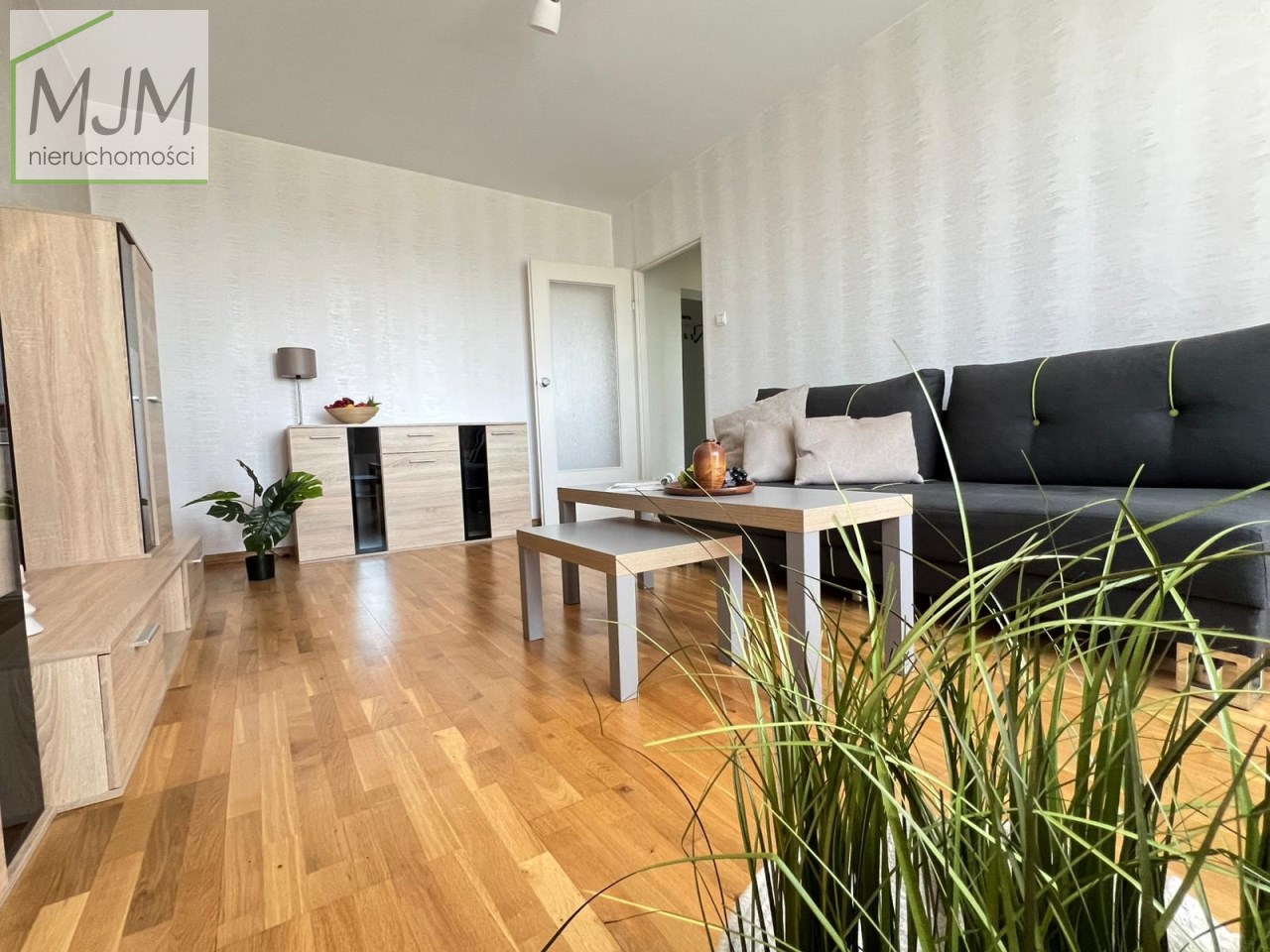 Salon jest jasny i przytulny, z wyjściem na balkon, który stanowi jeden z największych atutów mieszkania. Rozpościera się z niego widok na zieleń, bez bezpośredniego sąsiedztwa innych budynków, co daje poczucie prywatności, ciszy i spokoju – idealne miejsce na chwilę oddechu po dniu pracy.