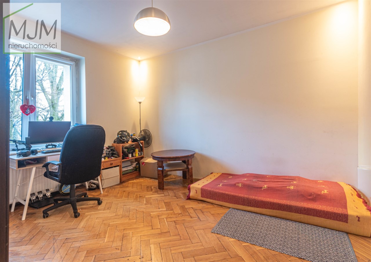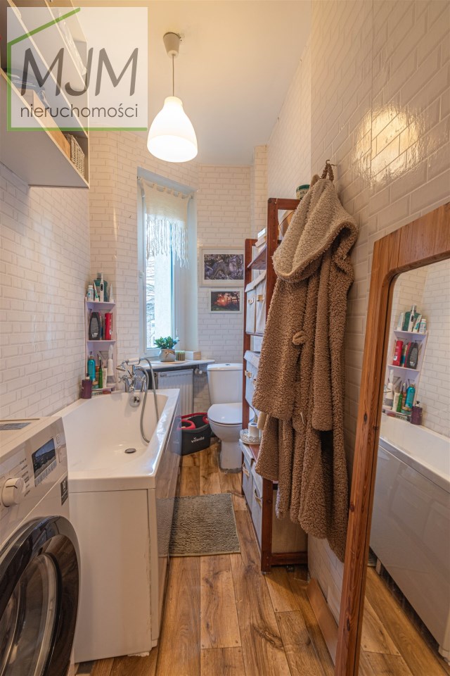 Mieszkanie znajduje się na 2 piętrze trzykondygnacyjnej kamienicy. W pokojach i korytarzu podłogi wyłożone są dębowym parkietem (do odświeżenia). Kuchnia i łazienka przygotowane do własnej aranżacji. Kuchnia o powierzchni 9 m2, bardzo widna z wyjściem na przestronny balkon. Duży pokój (19m2) i kuchnia usytuowane są od strony północno zachodniej, mniejszy pokój (16m2) i łazienka (ok.4,5m2) od południowego wschodu. Mieszkanie jest ciepłe i w większej części słoneczne, co przekłada się na zwroty za ogrzewanie. Wymienione okna PCV oraz instalacja elektryczna, kanalizacyjna i gazowa. W budynku nowe piony wodne i kanalizacyjne.