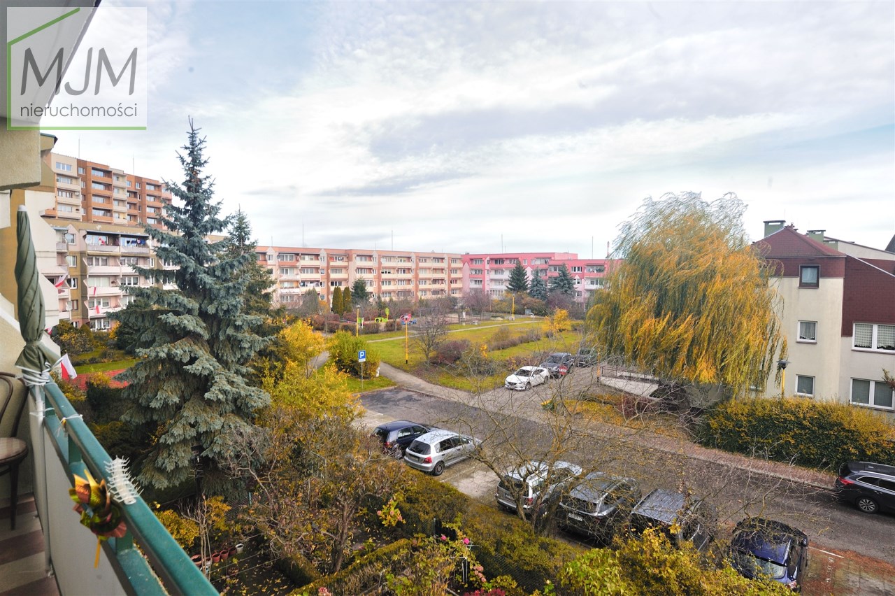 Pokój dzienny z balkonem, w holu szafa, sypialnia od strony południowej.