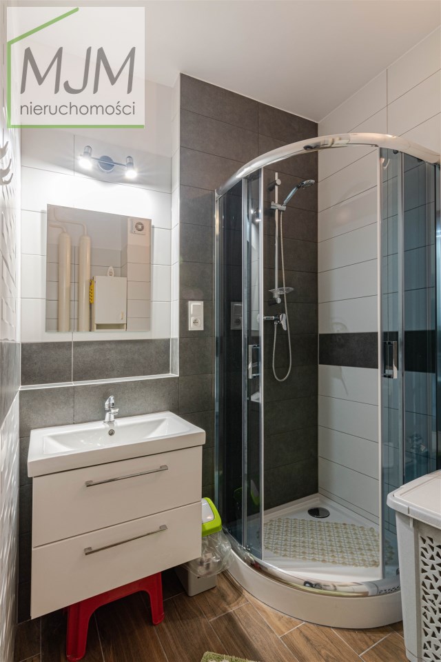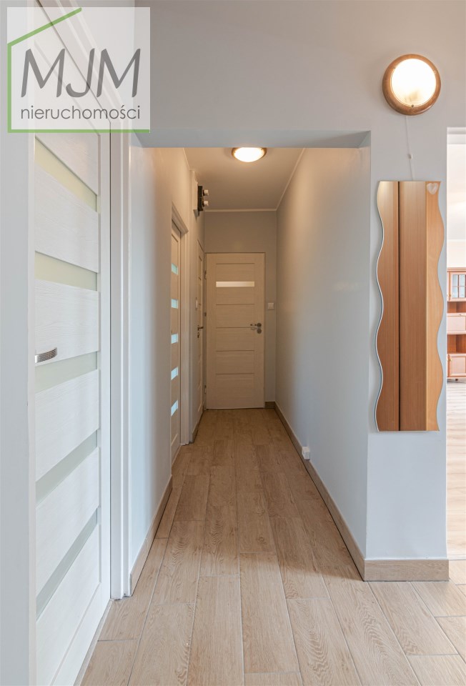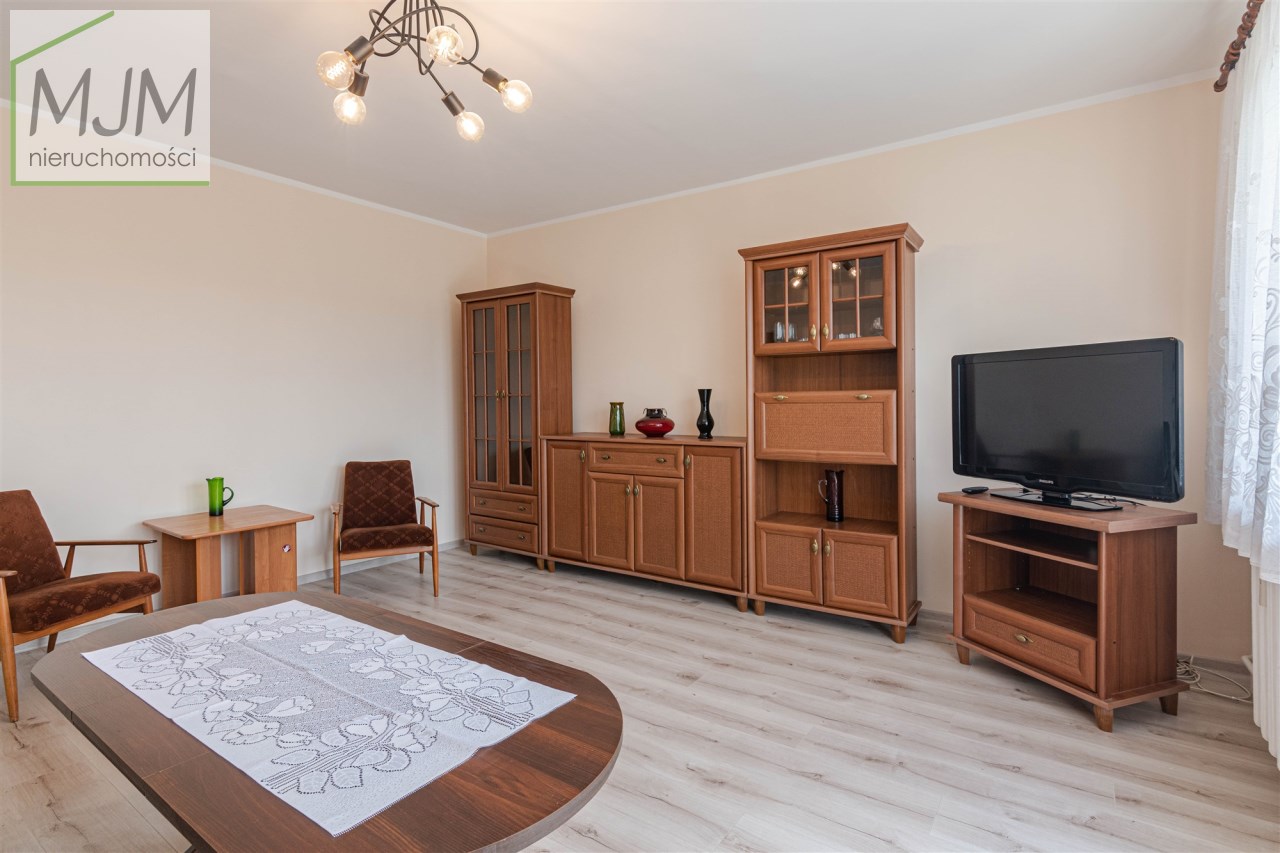 Mieszkanie w bardzo dobrym standardzie, na podłodze panele, ściany gładzone, malowane. Pokoje w całości umeblowane i wyposażone. Kuchnia umeblowana i wyposażona w sprzęt AGD - kuchenka gazowa, piekarnik elektryczny, lodówka, okap, kuchenka mikrofalowa i zmywarka. W łazience kabina prysznicowa, pralka. W przedpokoju duża szafa.
