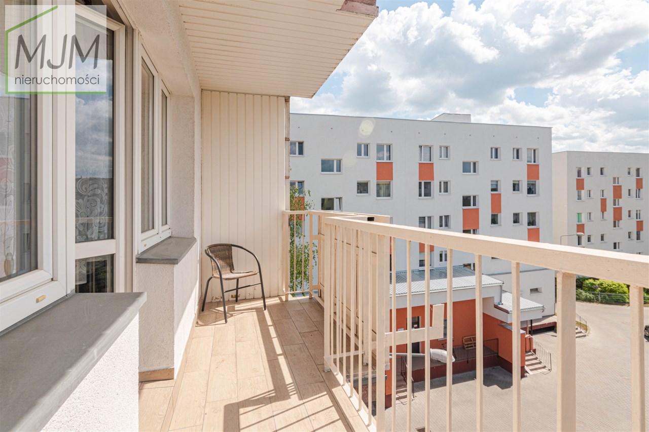 Mieszkanie położone na trzecim piętrze budynku, o dwustronnej ekspozycji okien: salon i kuchnia południowy zachód, dwa mniejsze pokoje północny wschód. Balkon wychodzi na wewnętrze podwórze z którego widać plac zabaw.