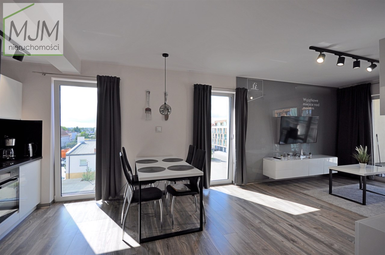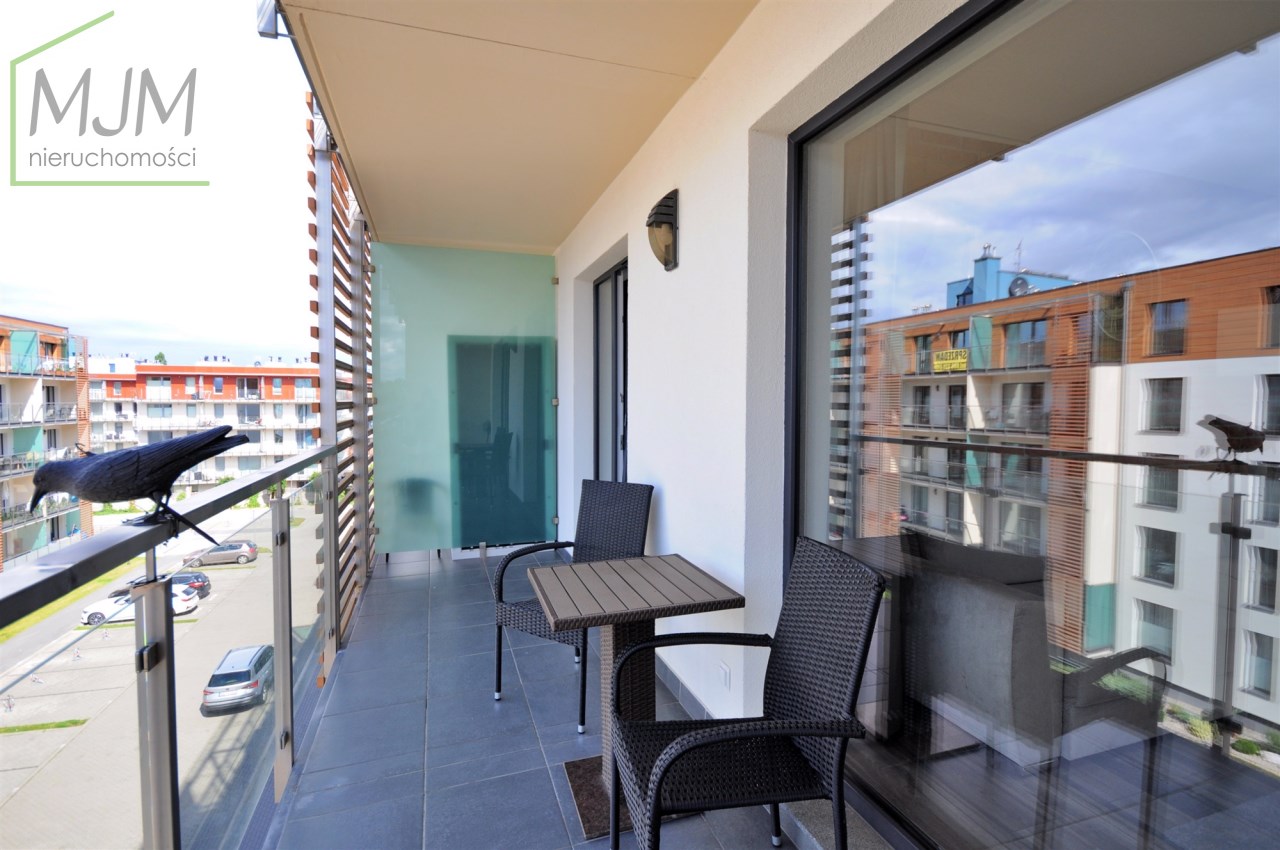 Składa się z sypialni z wygodnym dwuosobowym łóżkiem, salonu z rozkładaną sofą, połączonym z aneksem kuchennym, łazienki z prysznicem oraz balkonu z meblami wypoczynkowymi.